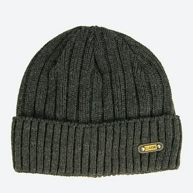 Чоловіча в'язана шапка тепла з відворотом ШЗФР-03-01 в рубчик Classic з флісовою підкладкою gray